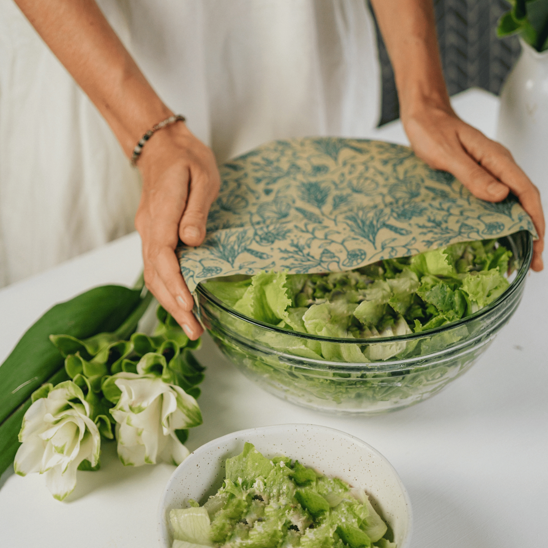 Create a buzz in your kitchen with our “Beeginner” set of three beautiful, organic cotton beeswax wraps. A colorful and truly practical alternative to saran wrap or plastic food storage containers, these reusable beeswax food wraps come in small, medium and large sizes and can be used to cover bowls of leftovers, wrap cheese, fruit, vegetables and even home baked bread.