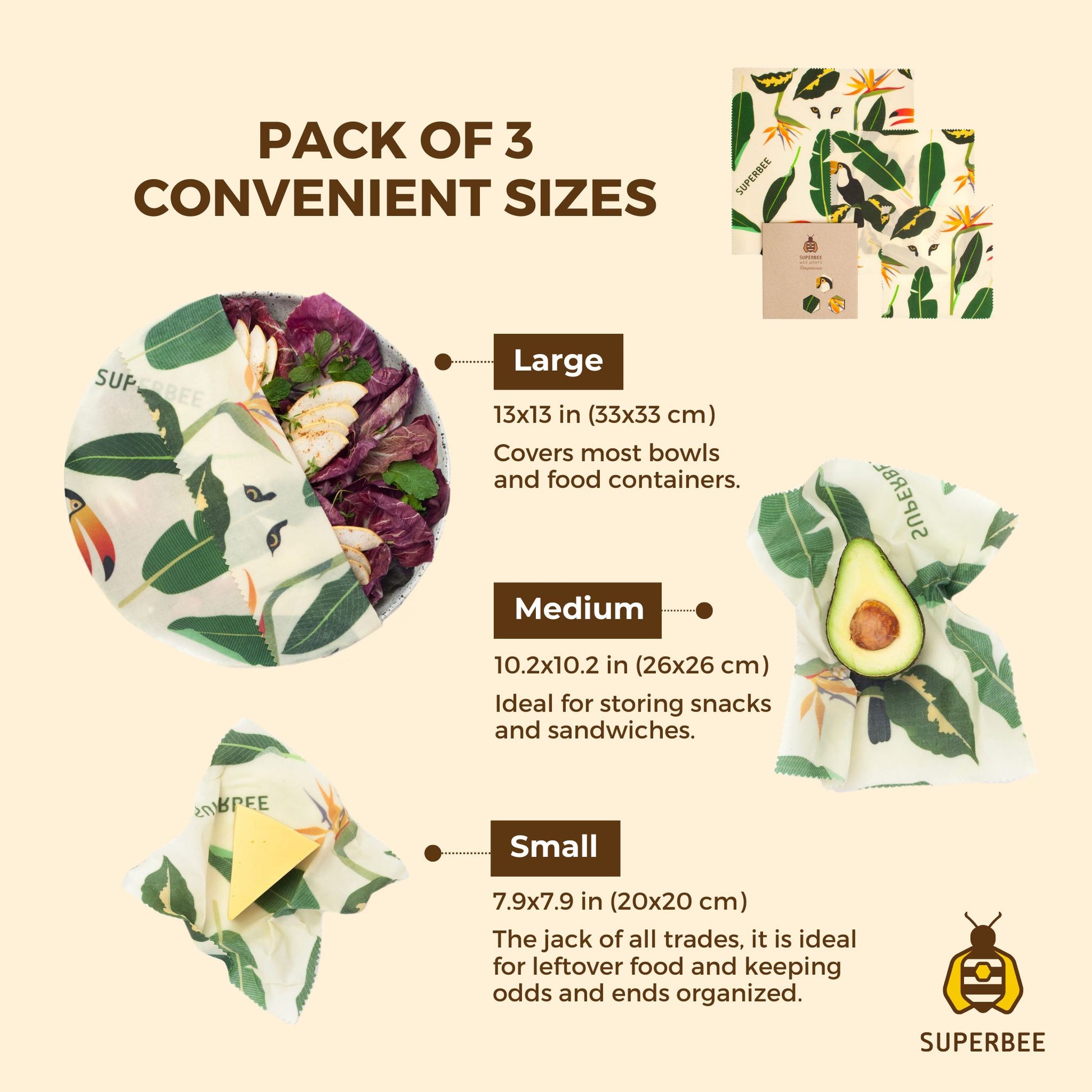 Beeswax Wraps “Beeginner” Set of 3 Sizes - Jungle