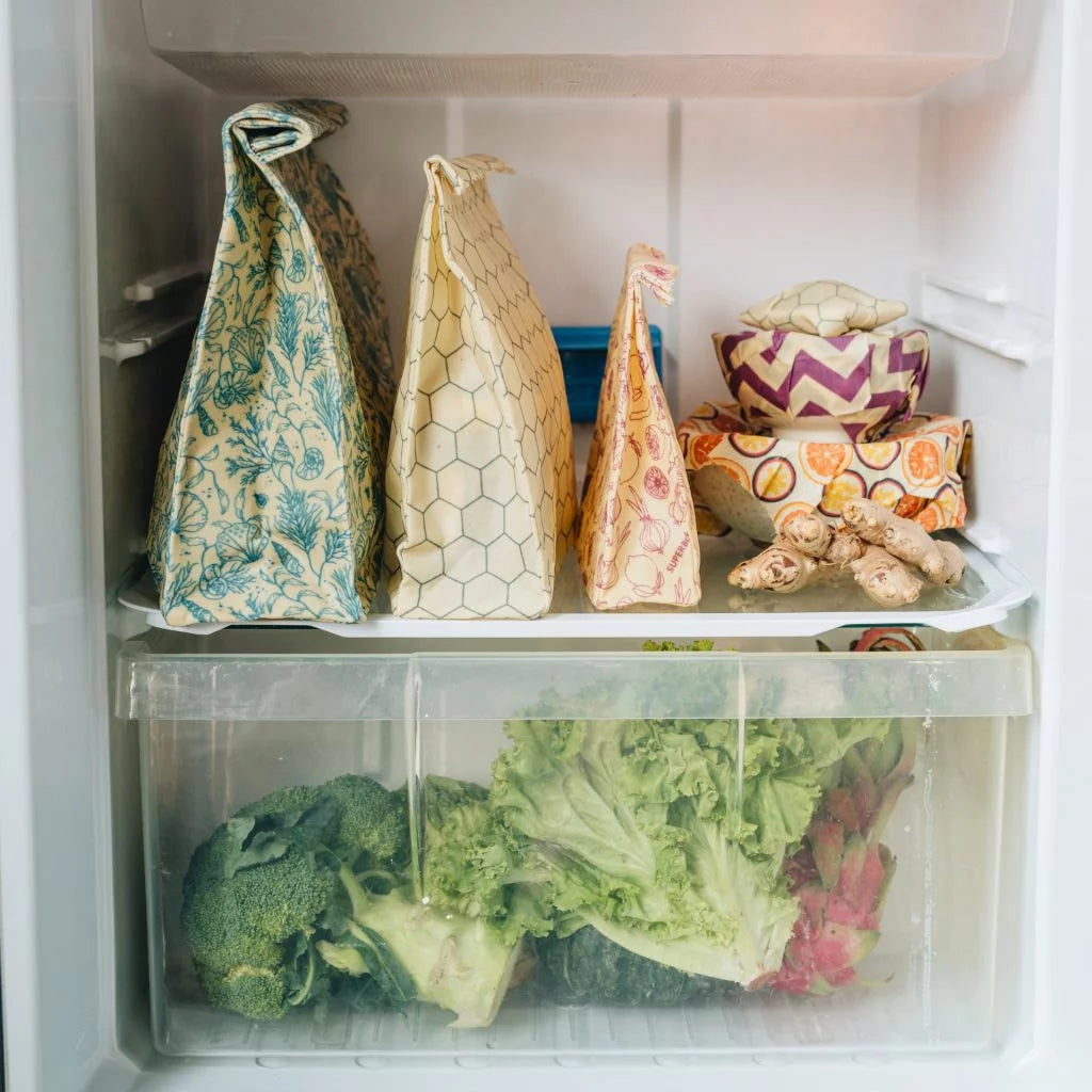 A reusable, waxed food storage bag, replaces ziplock bags and bulky plastic containers. Perfect for packed lunches and snacks, or for storing fresh produce or baked goods in either the fridge or freezer.